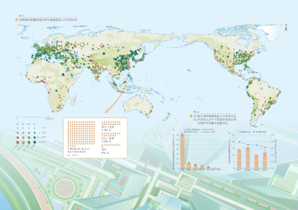 图2全球城市显著变绿比率与直接受益人口分布