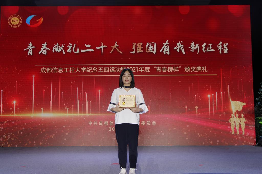 数字媒体技术专业2018级1班学生,连续三年获得特等奖学金,连续两年获得国家奖学金。在2020年度“青春榜样”评选活动中以最高票数获得“十佳团支部书记”荣誉称号,在2021年度“青春榜样”评选活动中又以最高票数获得“十佳青年学生”荣誉称号,同时获得“学习之星”荣誉称号。