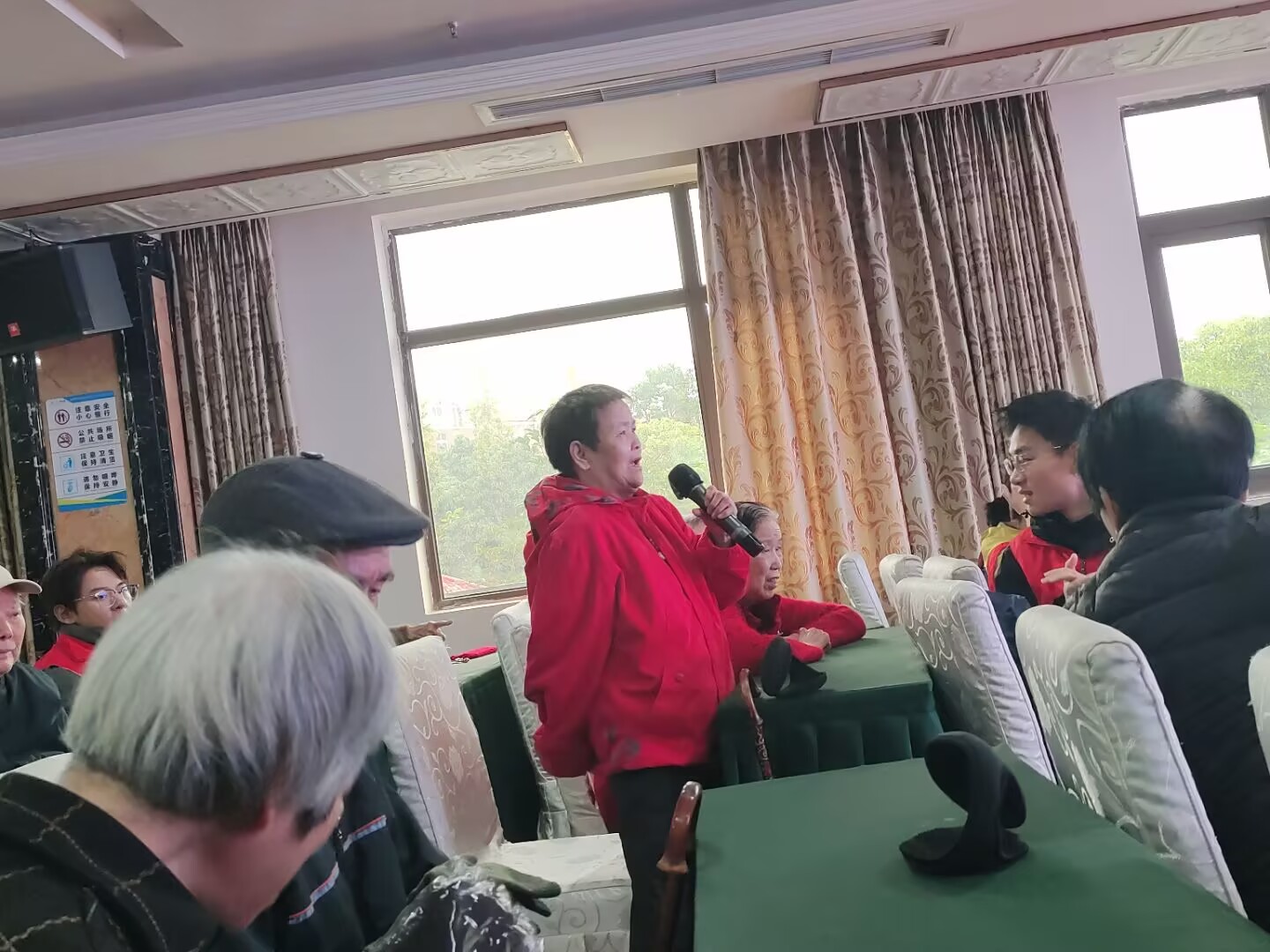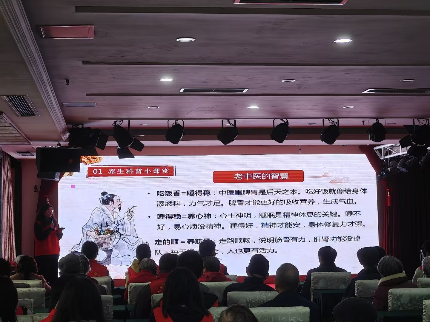 活动期间,志愿者们精心设计了多个环节。在养生知识分享中,他们用通俗易懂的语言为老人们讲解饮食搭配、适宜运动和心理健康等知识,老人们认真聆听、积极互动,现场氛围温馨融洽。随后的文艺表演环节,一曲《相亲相爱》搭配手势舞,点燃了现场气氛。志愿者们还手把手地教老人们学习简单的手势舞动作,老人们在音乐中感受着陪伴的快乐。