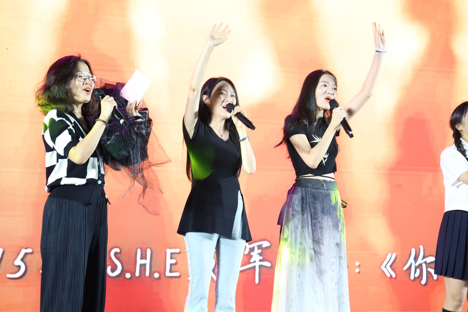 晚会在欢声笑语和不舍留恋中进入尾声,在《凤凰花开的路口》的合唱声中,在场所有领导、老师和全体演职人员上台合影留念,共同为晚会画上了圆满句号。