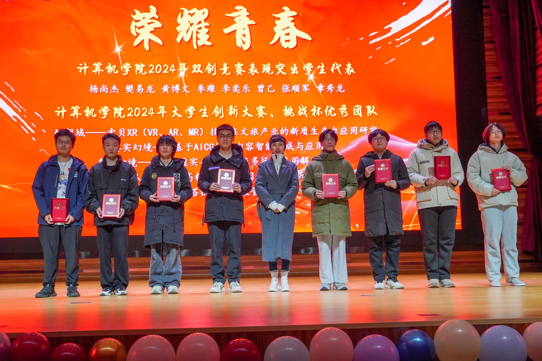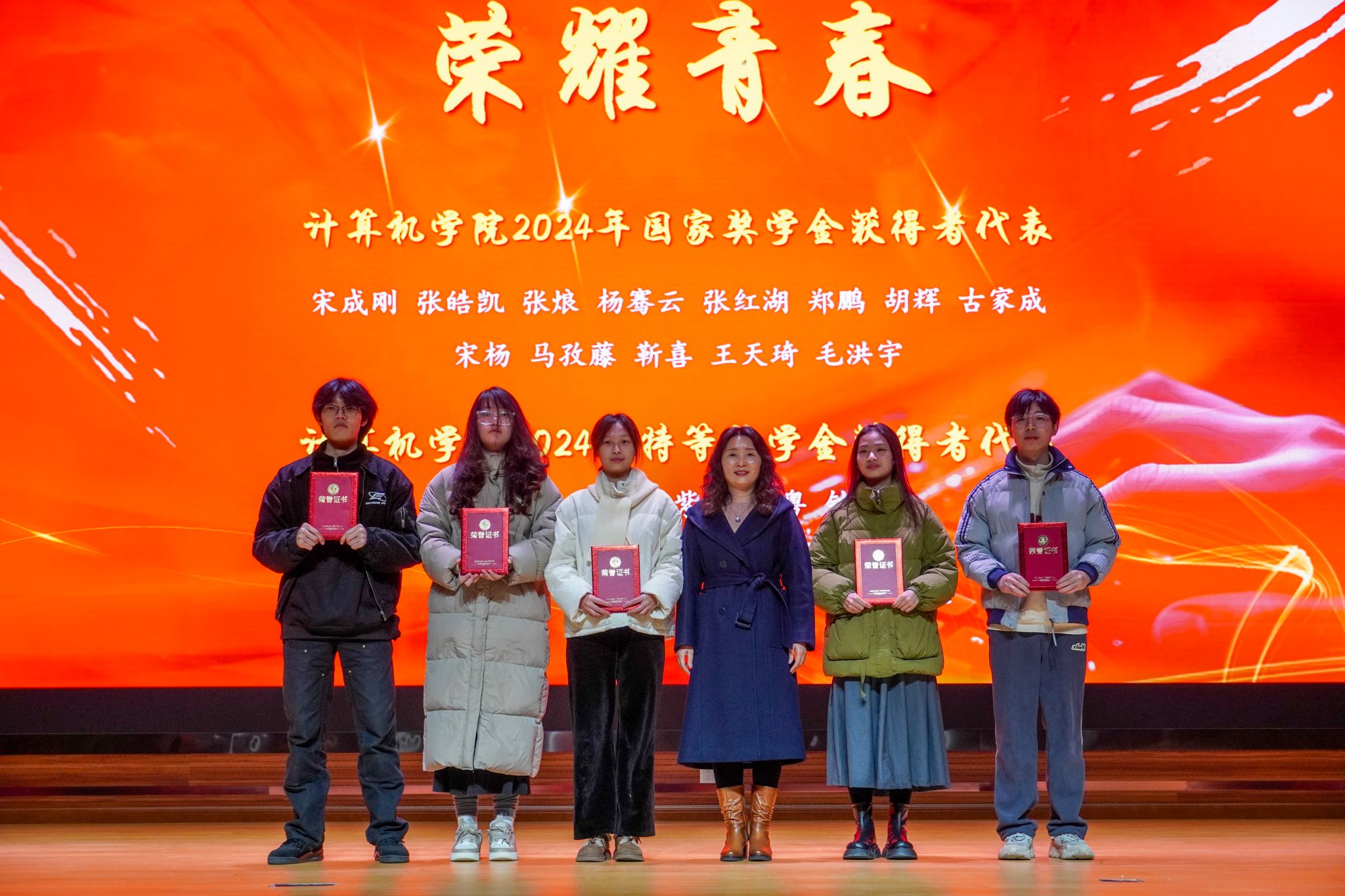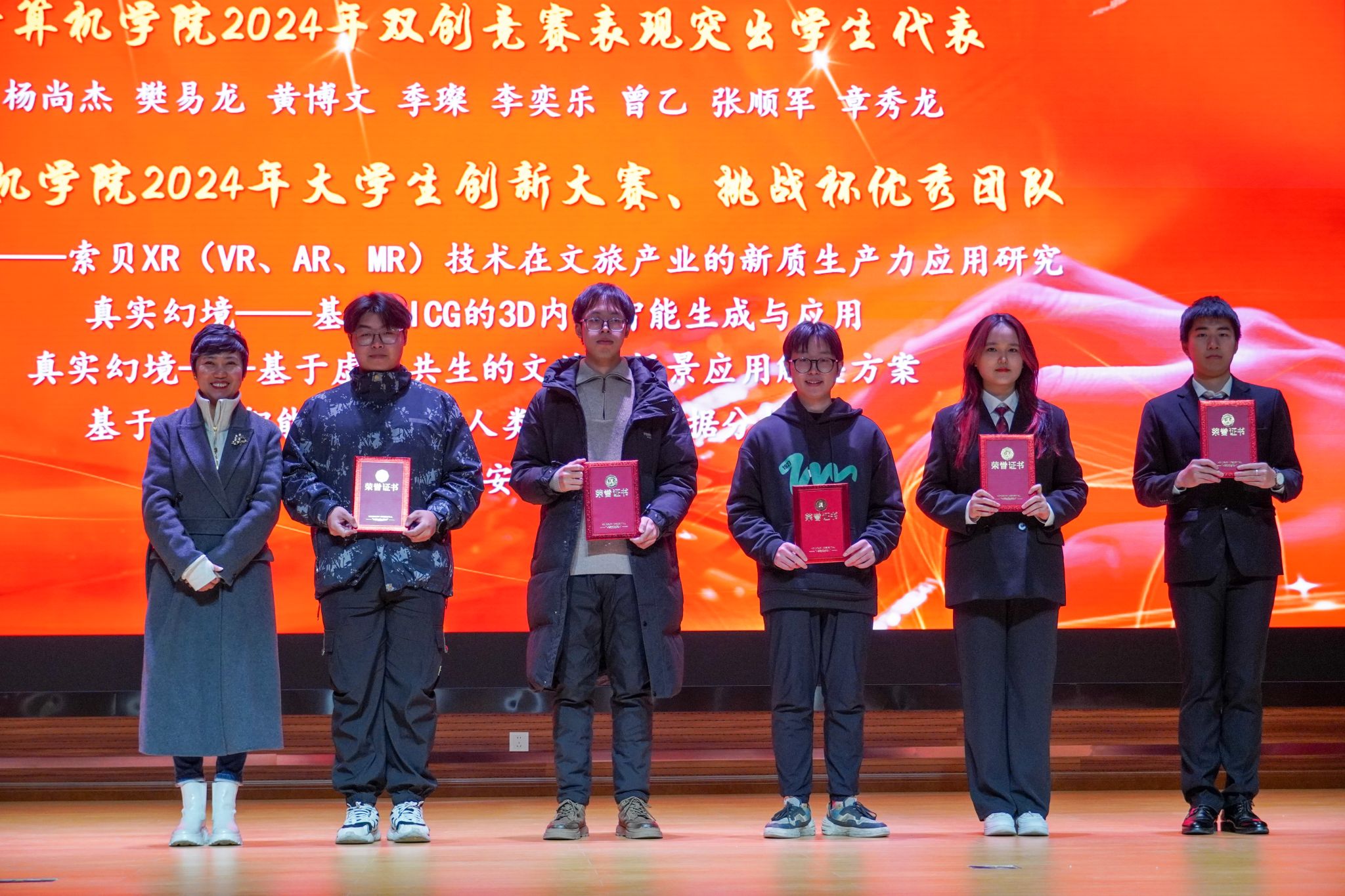 晚会伊始,学院对2024年表现优异的学生代表进行了隆重表彰。领奖学生包括荣获国家奖学金、特等奖学金等荣誉的学习标兵,以及在双创竞赛中取得优异成绩的创新人才。此外,学院还对在社会实践、文体活动中表现突出的同学,以及优秀学生干部代表进行了奖励和表扬。颁奖仪式既是对先进个人的认可,也是对全体师生的鼓励,激励大家以更加积极的态度投入到学习和生活中。