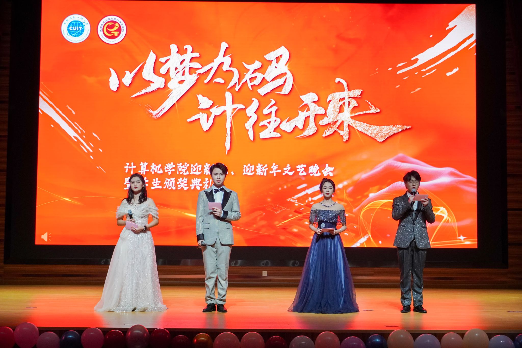 12月12日晚7点,伟德国际1946,Bevictor伟德,伟德官网“以梦为码 计往开来”伟德国际1946迎新生、迎新年文艺晚会暨学生颁奖典礼在成信礼堂举行。学院党委书记陈敏,党委副书记、纪委书记倪涛,副院长朱烨,全体辅导员老师、学院教师代表,以及2024级本科、研究生新生,高年级学生代表500余人观看了晚会。