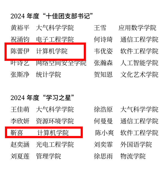 未来,我院将继续以“青春榜样”评选活动为契机,发挥朋辈榜样力量,推动形成积极向上、奋勇争先的良好氛围,助力更多计算机学子在榜样的引领下实现人生目标,为国家和社会的发展贡献青春力量。