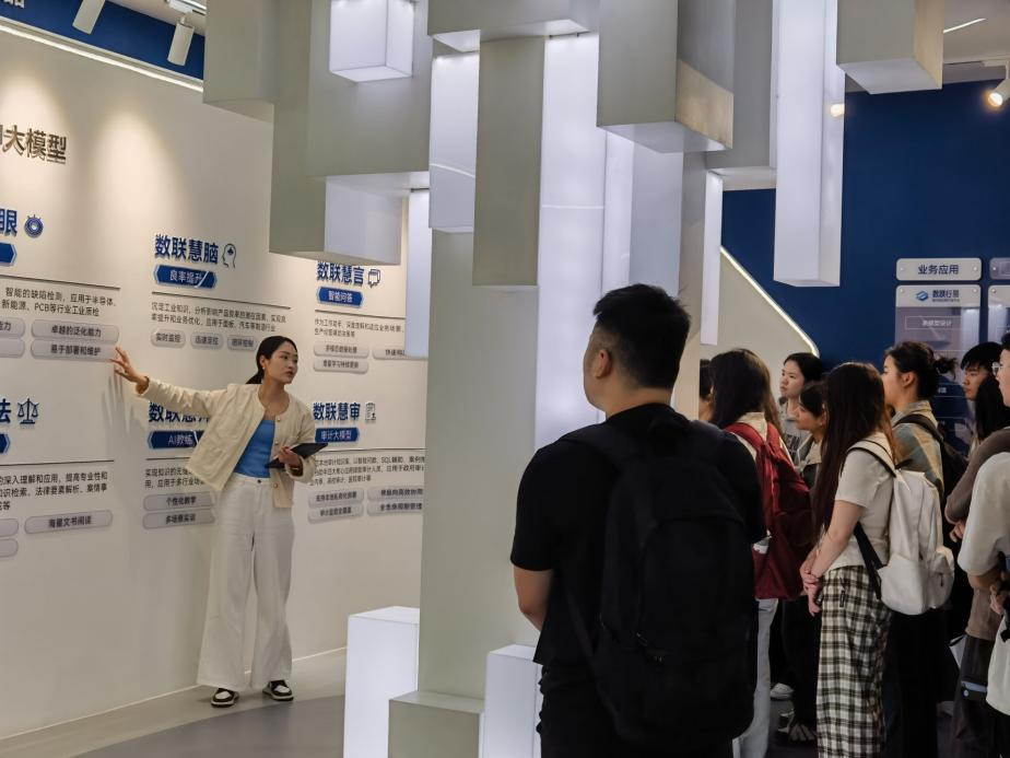 活动当日,学生们在工作人员的引导下,先后参观了办公区域与研发中心,身临其境地感受到科技企业浓厚的工作氛围与创新环境。在随后的交流环节中,企业工作人员围绕公司发展历程、核心业务以及技术创新成果等内容,系统地向学生们介绍数之联科技在大数据、人工智能领域的探索实践。前沿技术与产业落地的紧密结合,让现场学生真切领悟到技术创新为行业发展带来的巨大价值。