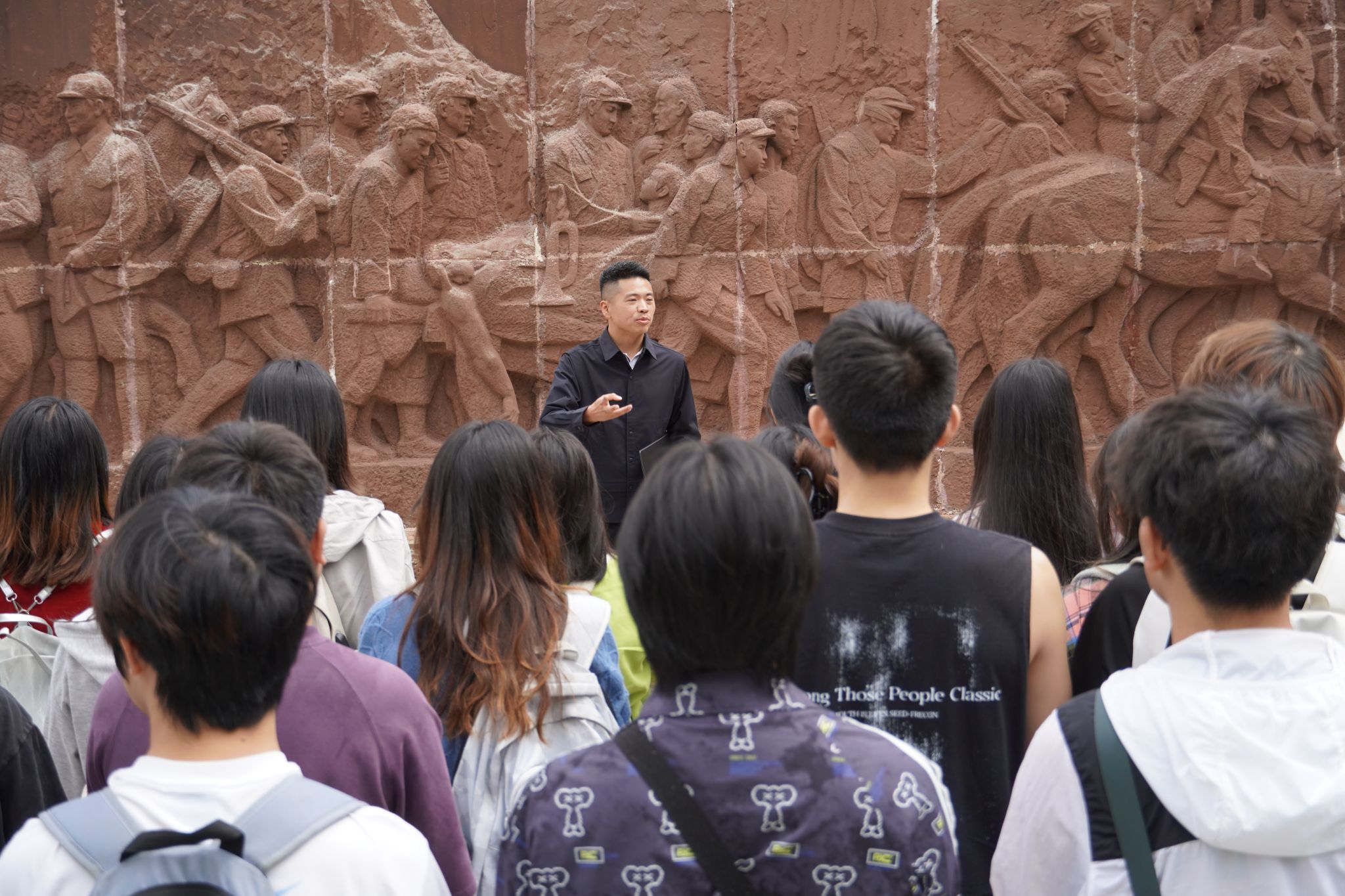 活动中,倪涛以《新时代如何做一名有为青年》为题讲授“微团课”。他表示,在红军长征路上开展活动意义非凡——这片浸染着先烈热血的土地,是诠释“信仰之力”的鲜活课堂。他指出,红军长征精神作为中华民族精神谱系中的璀璨明珠,不仅蕴含着革命年代“把活路堵死、向死路求生”的必胜信念,更凝结着共产党人“革命理想高于天”的价值追求,这种跨越时空的精神财富,至今仍在照亮青年的奋进之路。针对新时代青年的使命与担当,倪涛强调三点要求:一是以信仰铸魂,从长征精神中汲取“风雨如磐不动摇”的定力,将个人成长坐标锚定在民族复兴伟业中,让青春理想与家国情怀同频共振;二是以奋斗逐梦,在学业上勇闯“娄山关”“腊子口”,敢于挑战专业领域“卡脖子”难题,以“不破楼兰终不还”的拼劲攀登知识高峰;三是以担当践行,主动肩负“服务同学、奉献社会”的责任,在学生组织建设中当先锋、在志愿服务中作表率,用“功成不必在我,功成必定有我”的胸怀诠释青年担当。