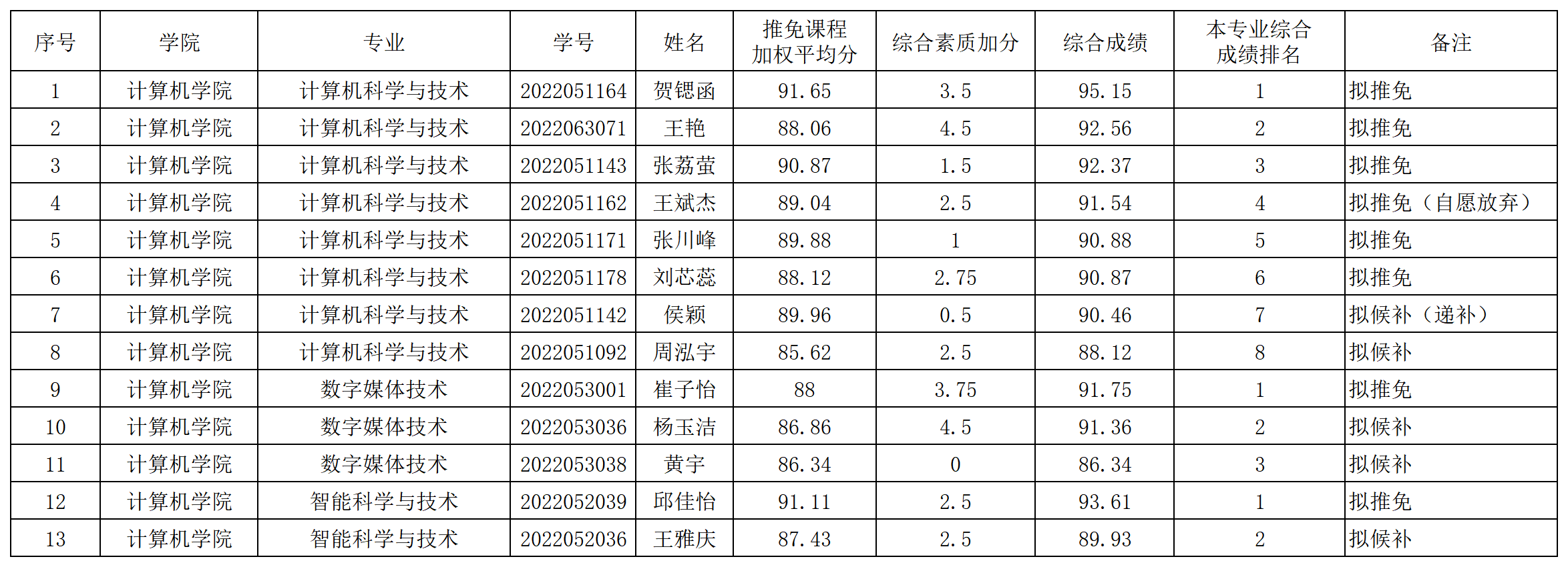 伟德国际19462026届推荐优秀本科毕业生免试攻读研究生拟推荐名单和候补名单