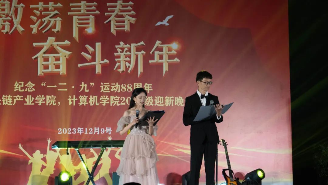纪念“一二 • 九”运动88周年暨区块链产业学院·伟德国际19462023级迎新晚会顺利举行