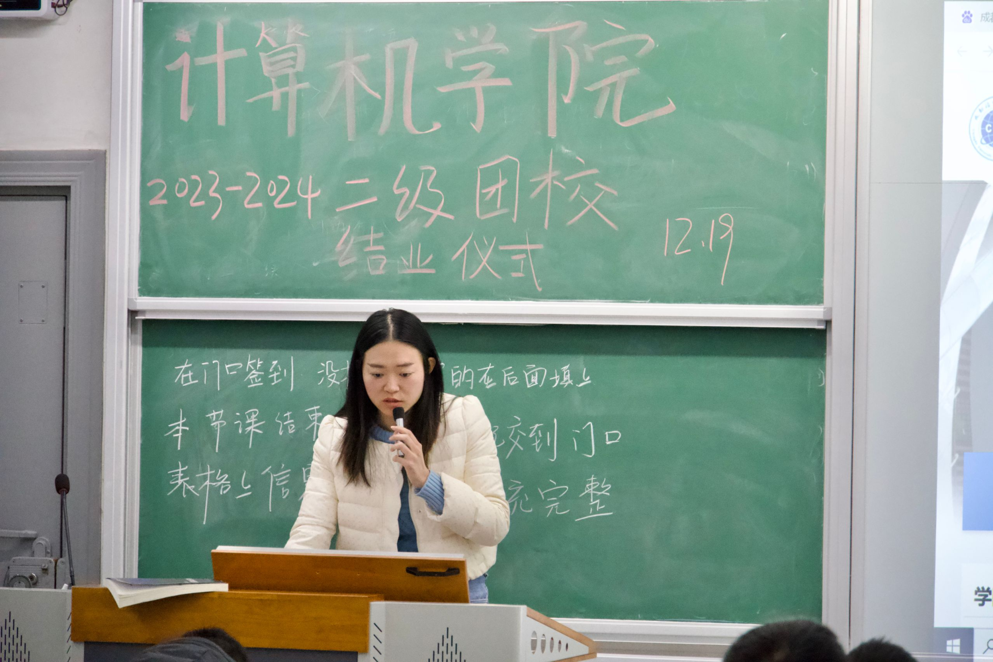 2023年12月19日18:40在H1206教室举办2023-2024学年二级团校结业仪式暨第七次团课。本次团校结业仪式暨第七次团课由学院团委书记岳旭媛主持并讲授。岳老师和同学们分享了如何度过大学时光的十条建议,要向自己认定的目标前进。同学们表示,会规划好自己的人生道路和前进方向,珍惜大学时光。本次结业仪式的顺利举行,标志…[详细] 2023年12月20日